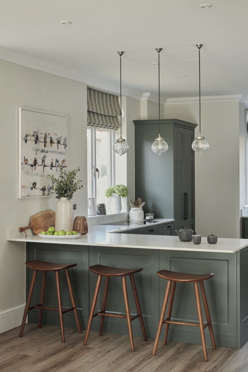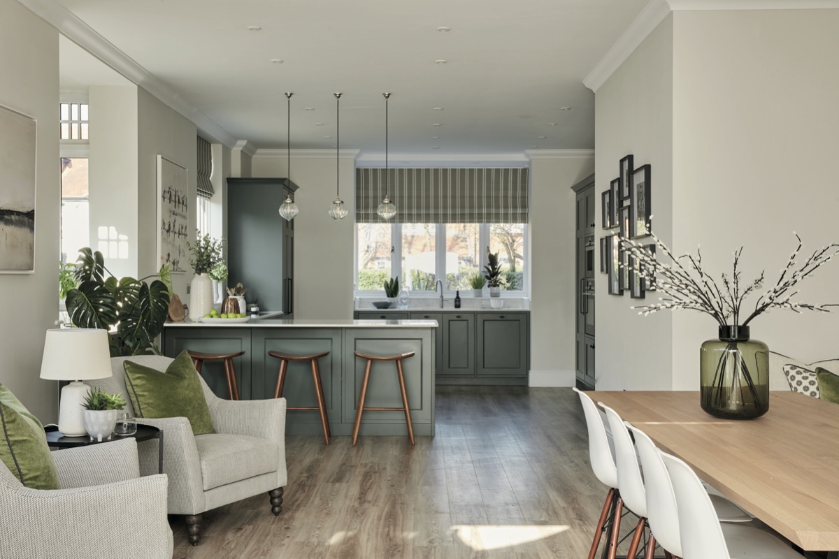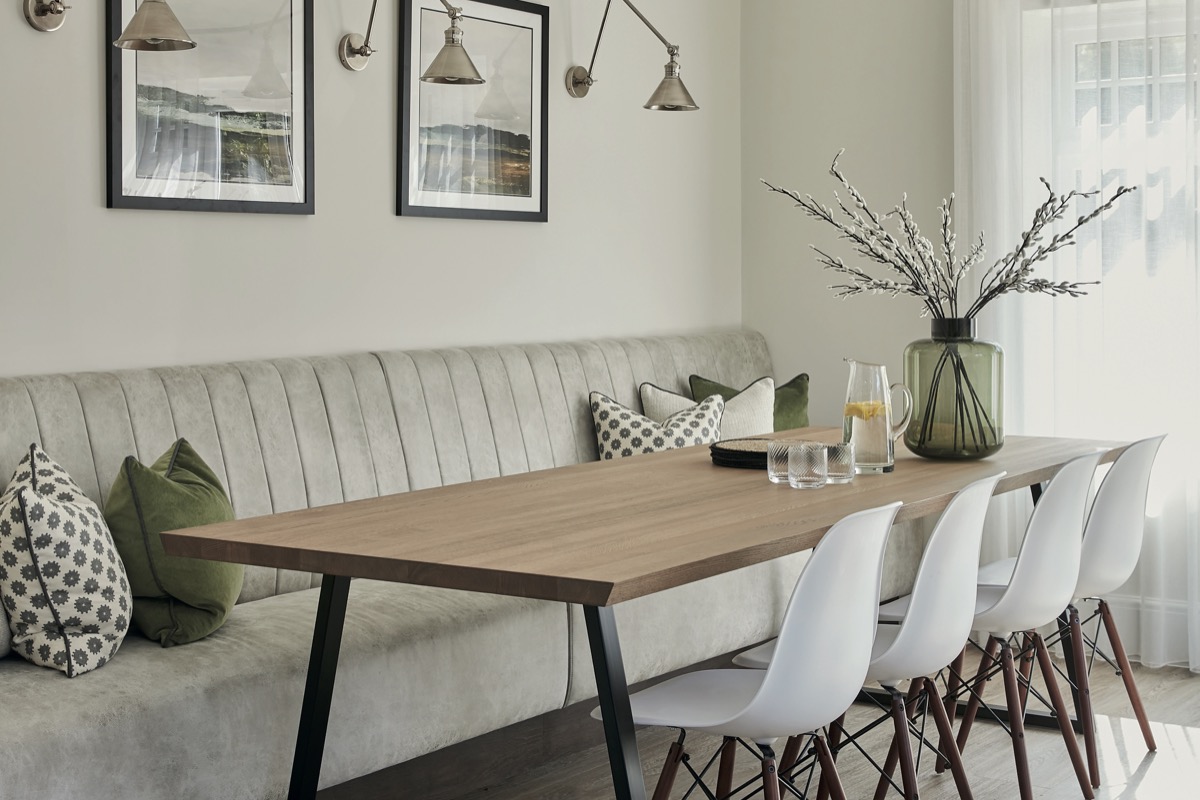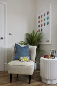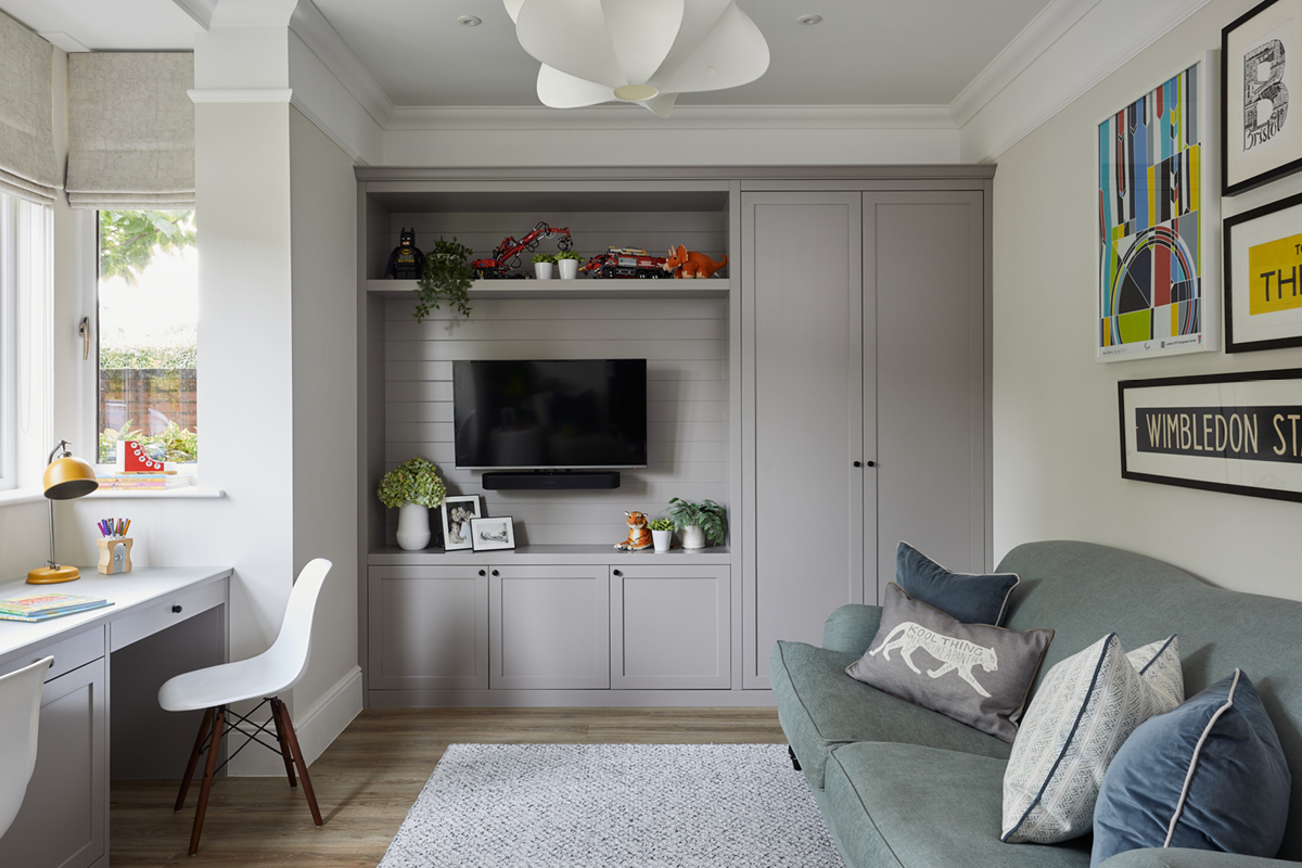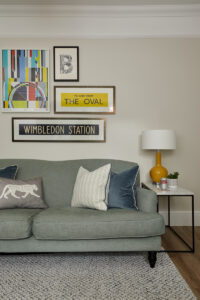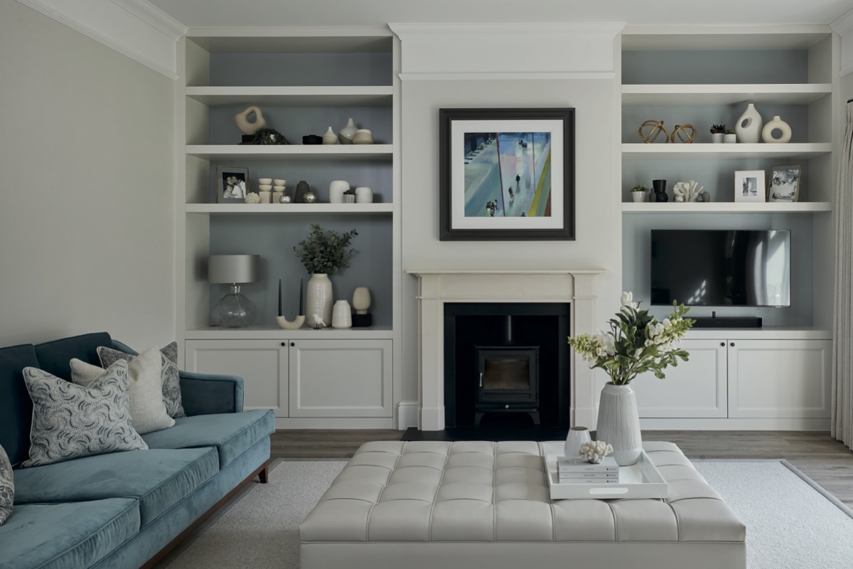 A reception room affectionally named ’the room with no purpose’ was knocked through to create a fabulous new kitchen and dining space. We moved another wall to create space for beautiful, practical storage of coats, shoes and school kit. And lastly redesigned the formal sitting room to include bespoke joinery, upholstery and a new fireplace.